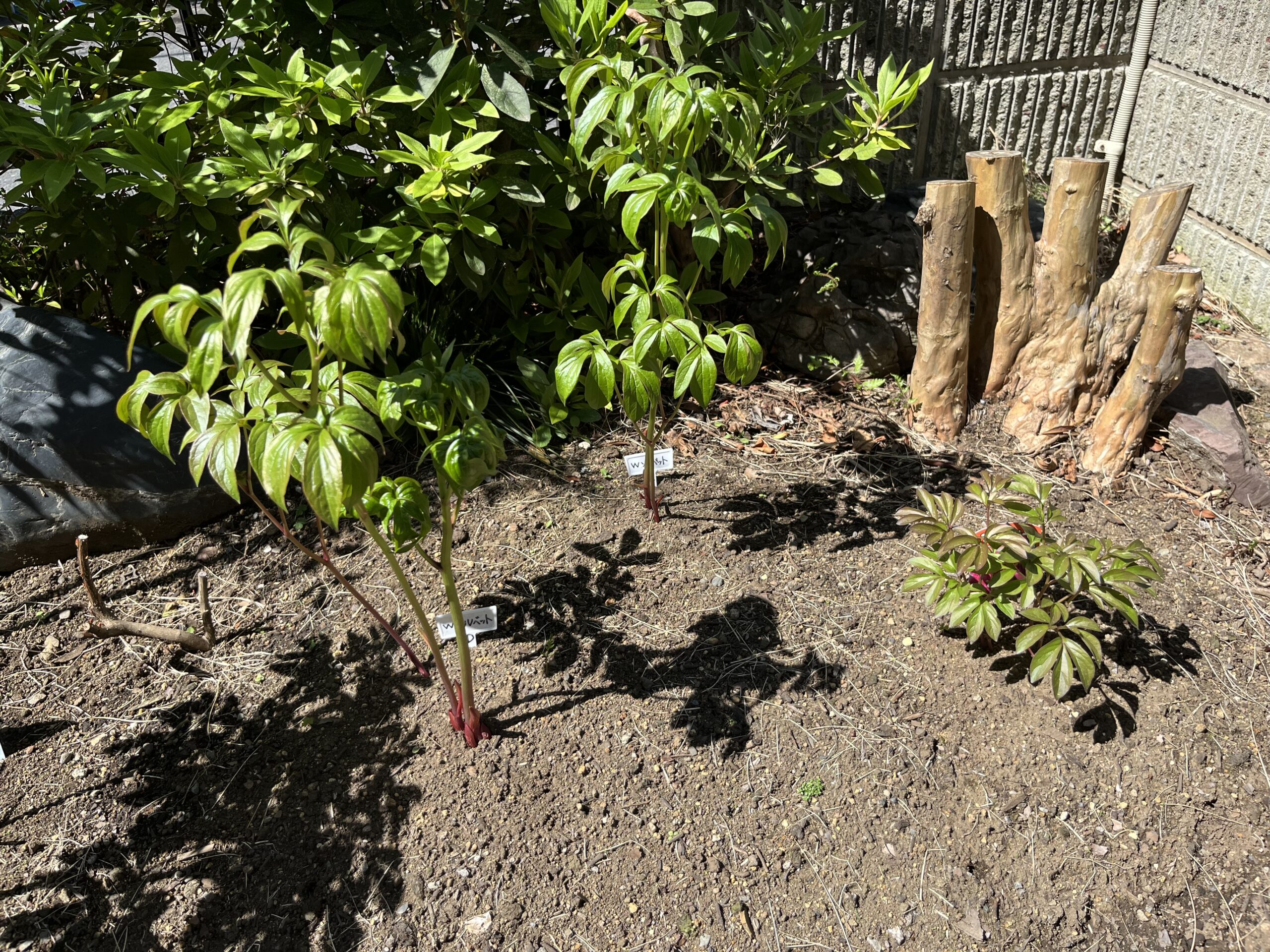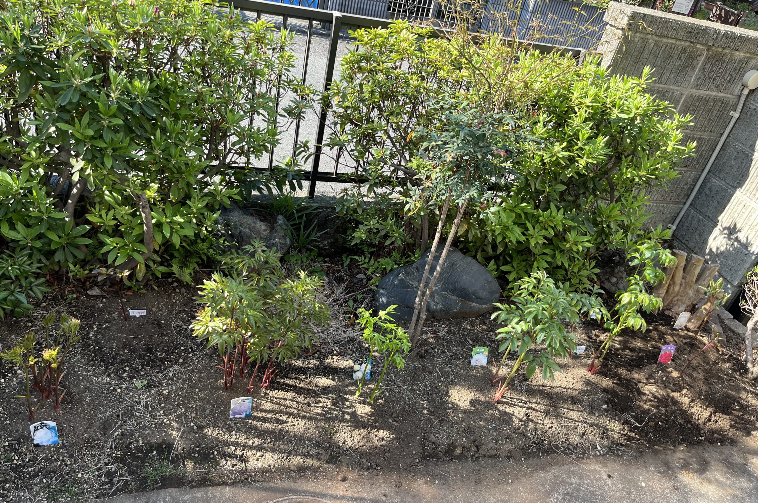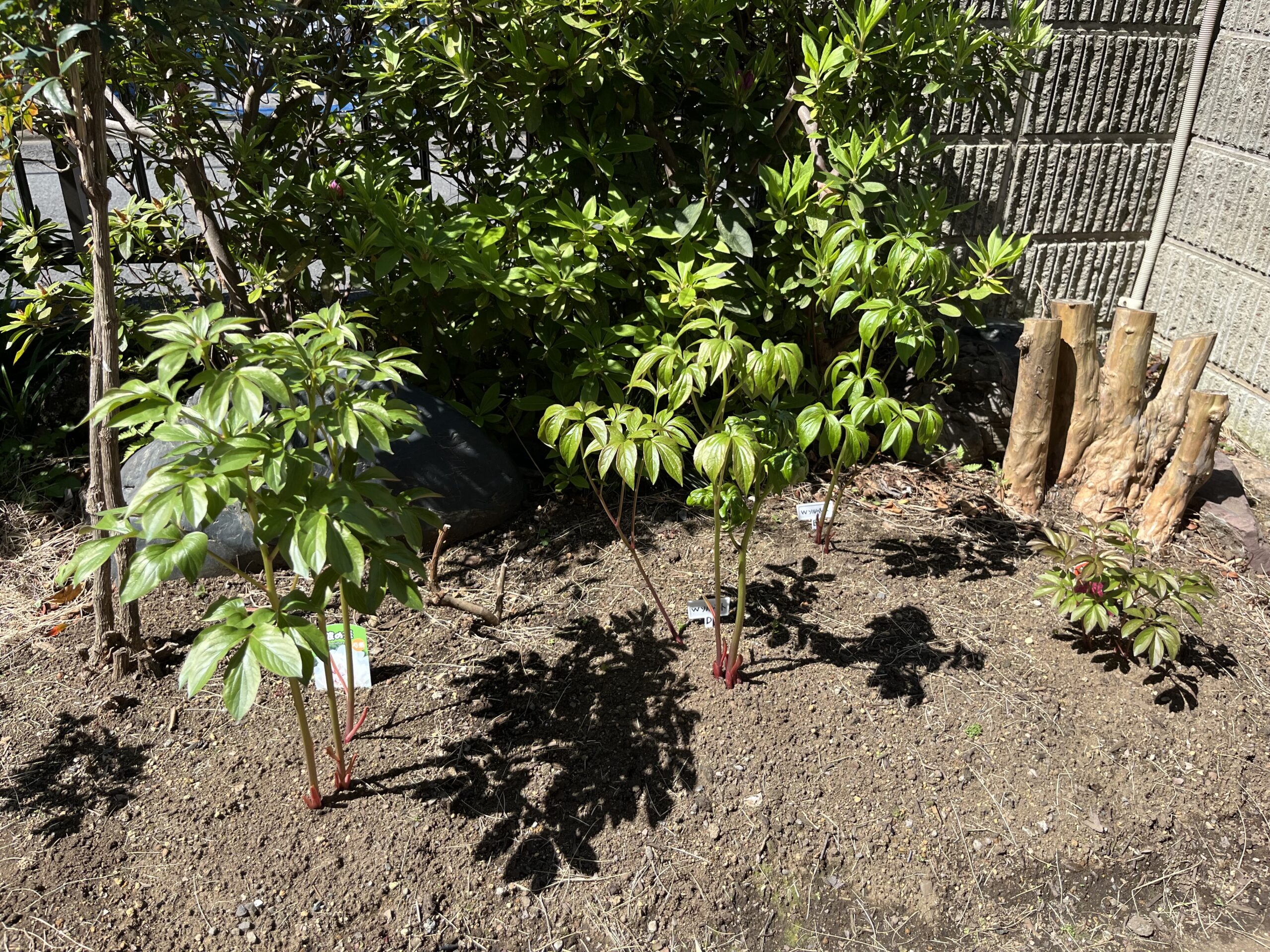 こうして今回新たに一つを処分して新たに2株を植え付けたことで、玄関側のシャクヤク花壇の株数は一つ増えて、現在、9品種、株の数はちょうど10株となった。