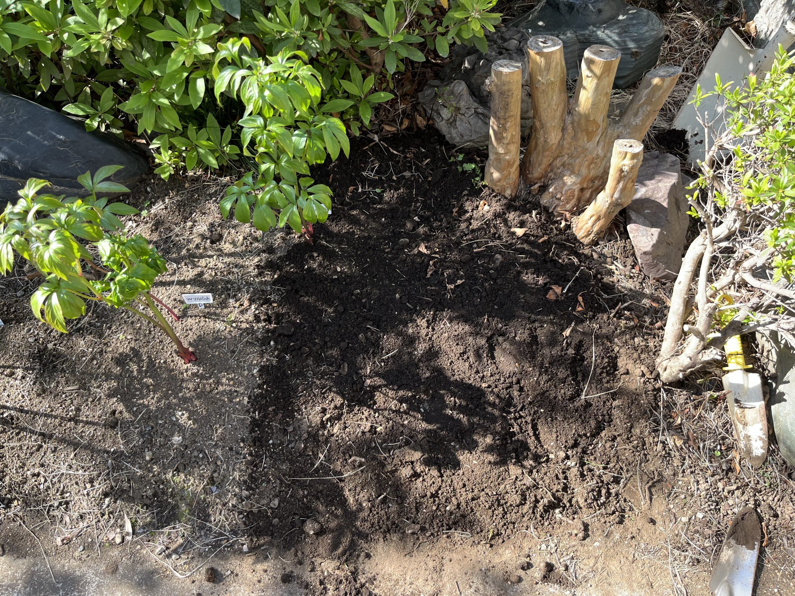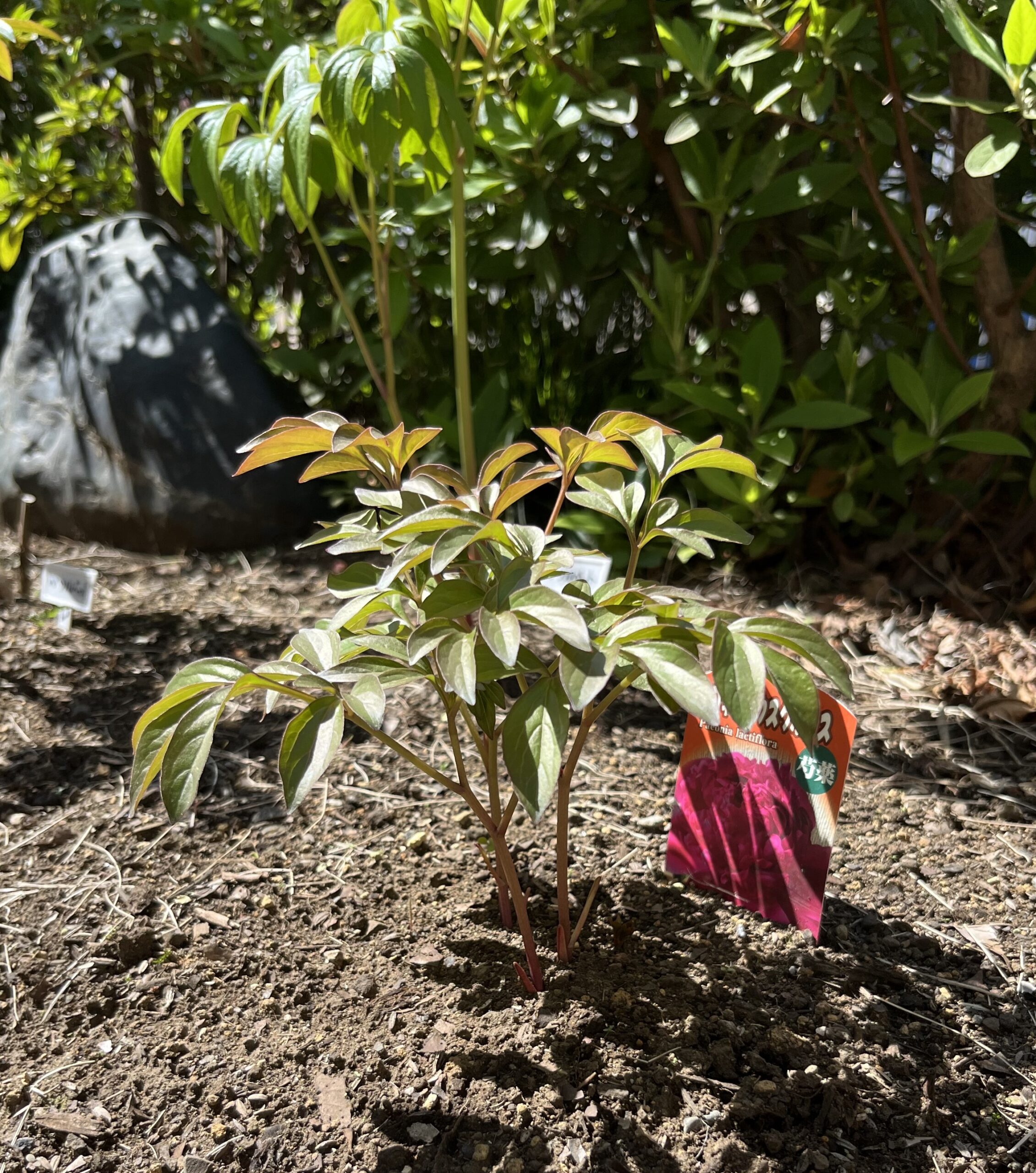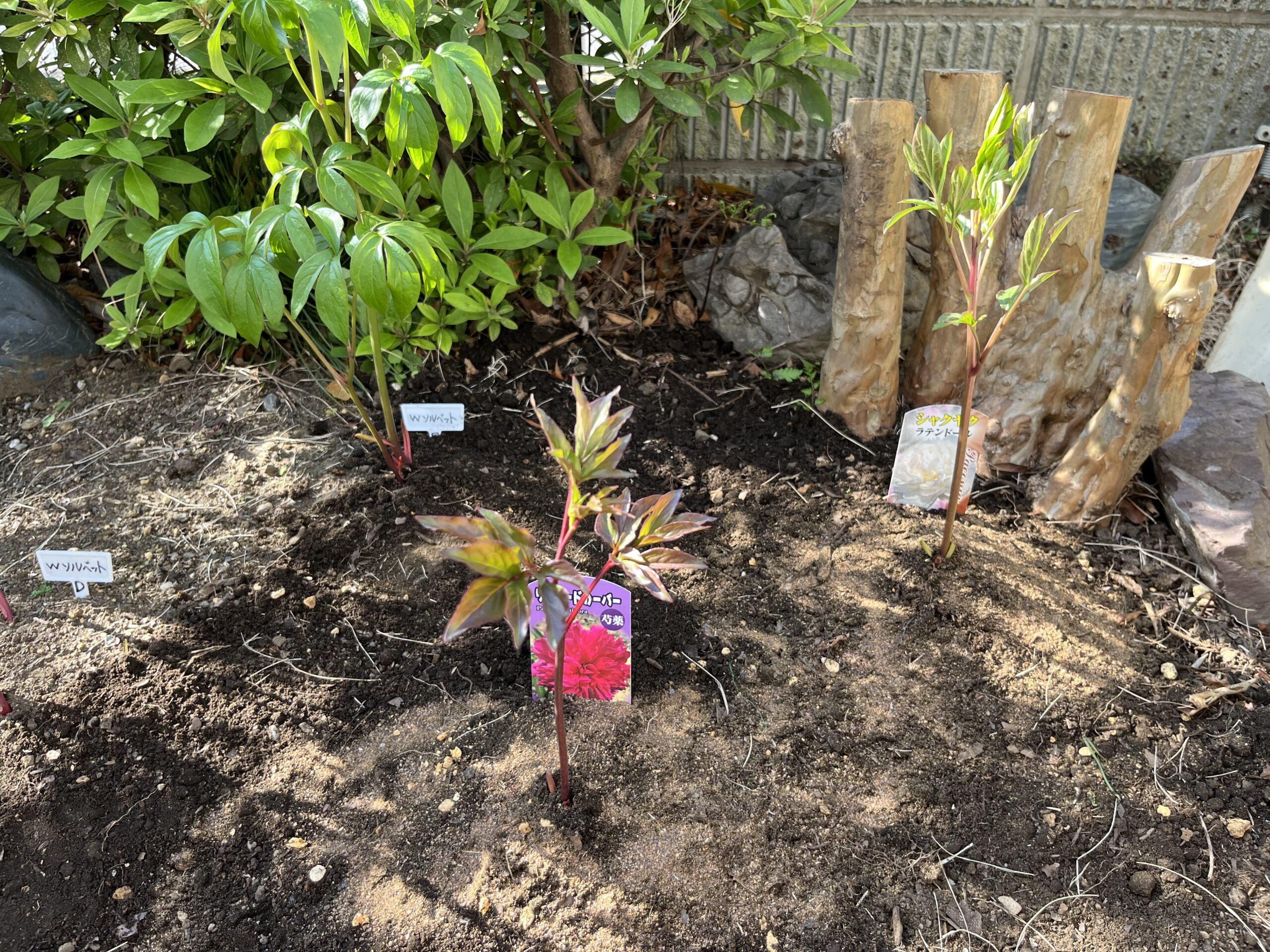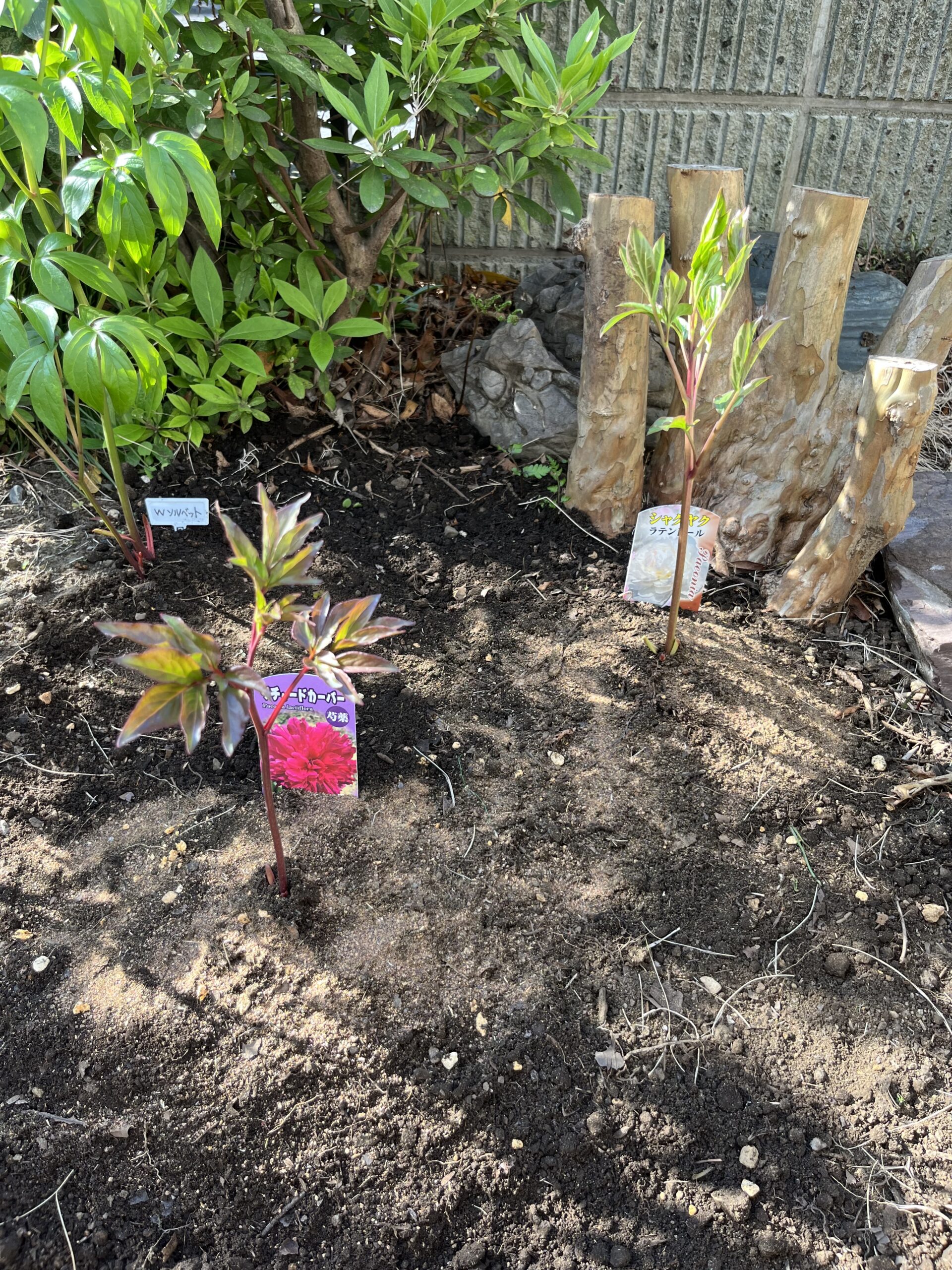 こうして今回新たに一つを処分して新たに2株を植え付けたことで、玄関側のシャクヤク花壇の株数は一つ増えて、現在、9品種、株の数はちょうど10株となった。